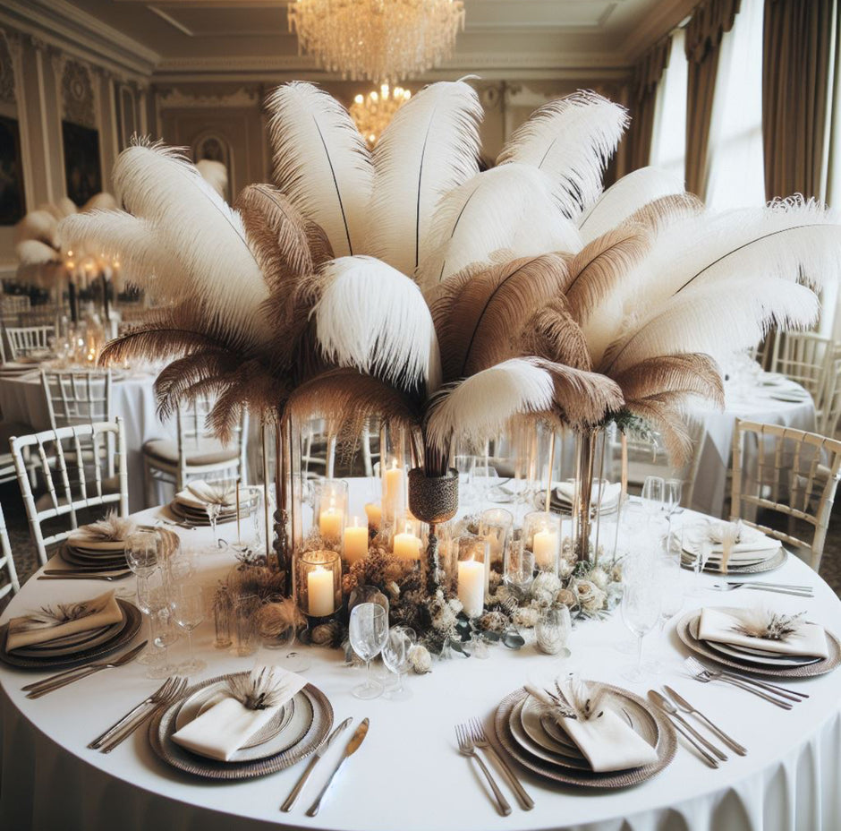 Our carefully curated selection of feathers in various colors and styles allows you to create stunning and unique centerpieces that will leave a lasting impression on your guests.